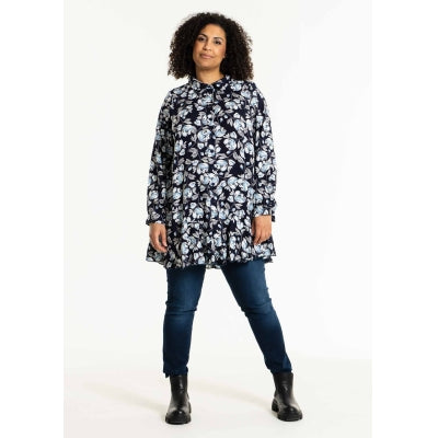 Lækker "Nacha" tunika i viskose - Navy/Hvid Blomst