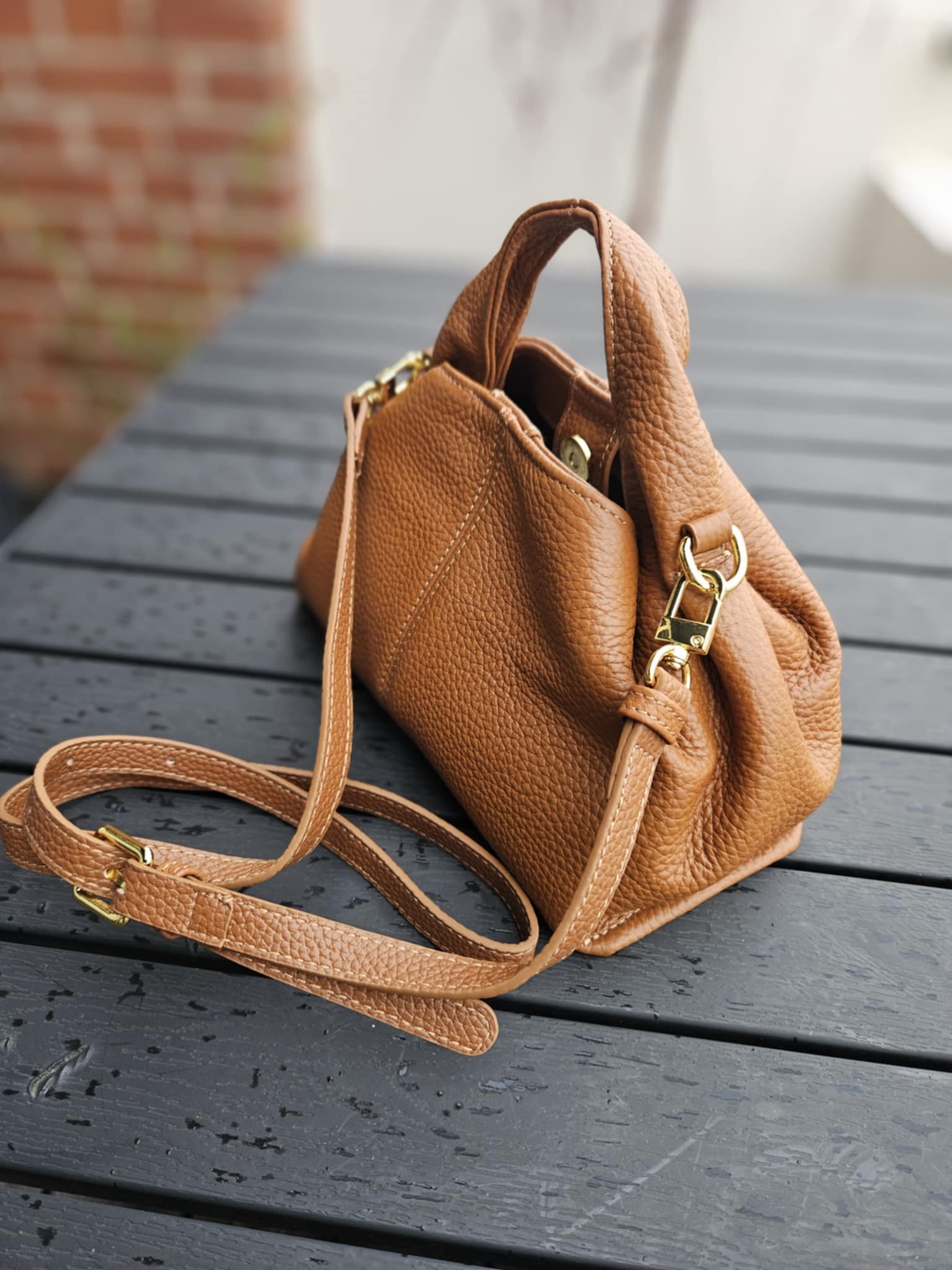 Lille håndtaske med rem - Cognac