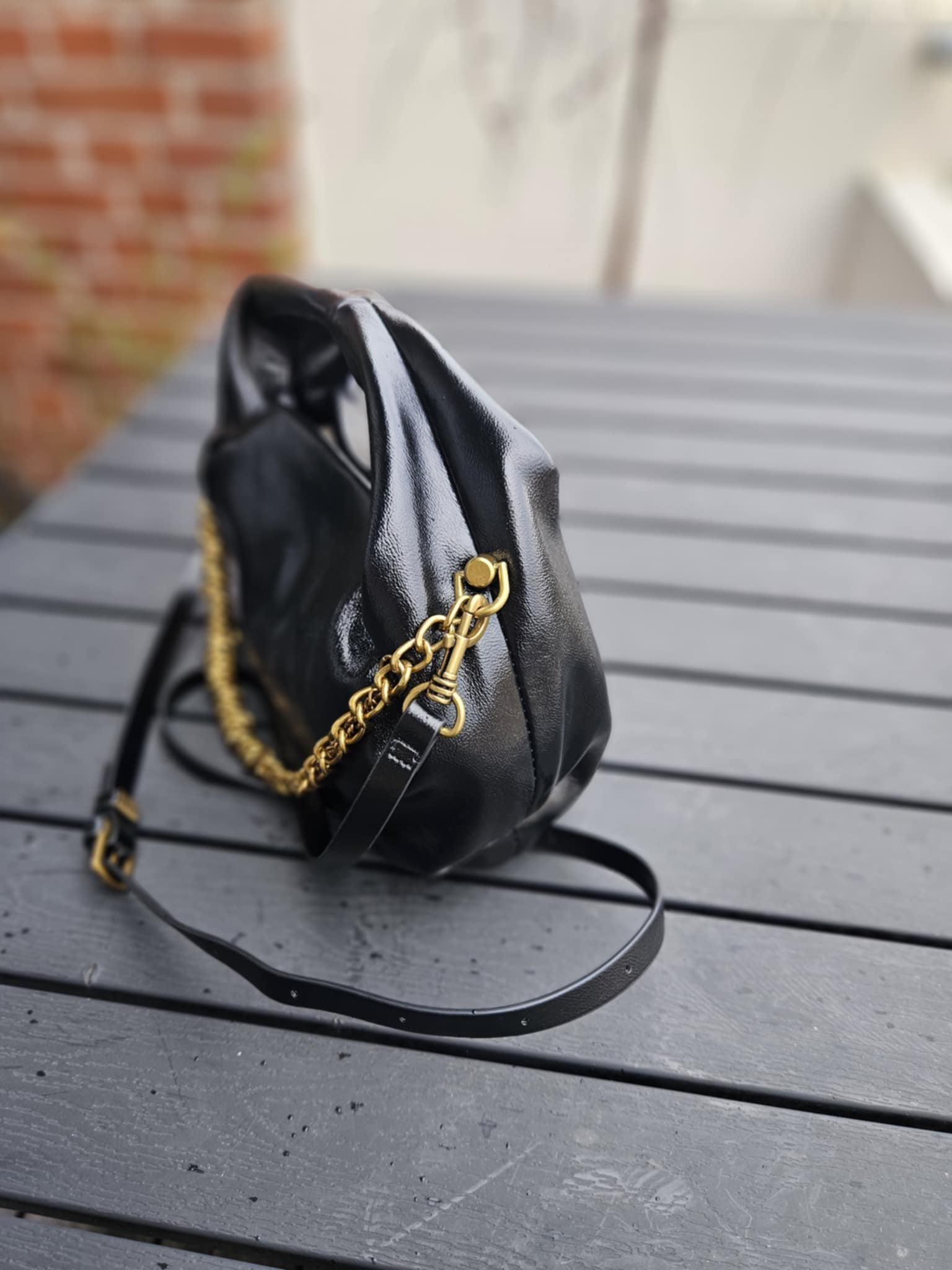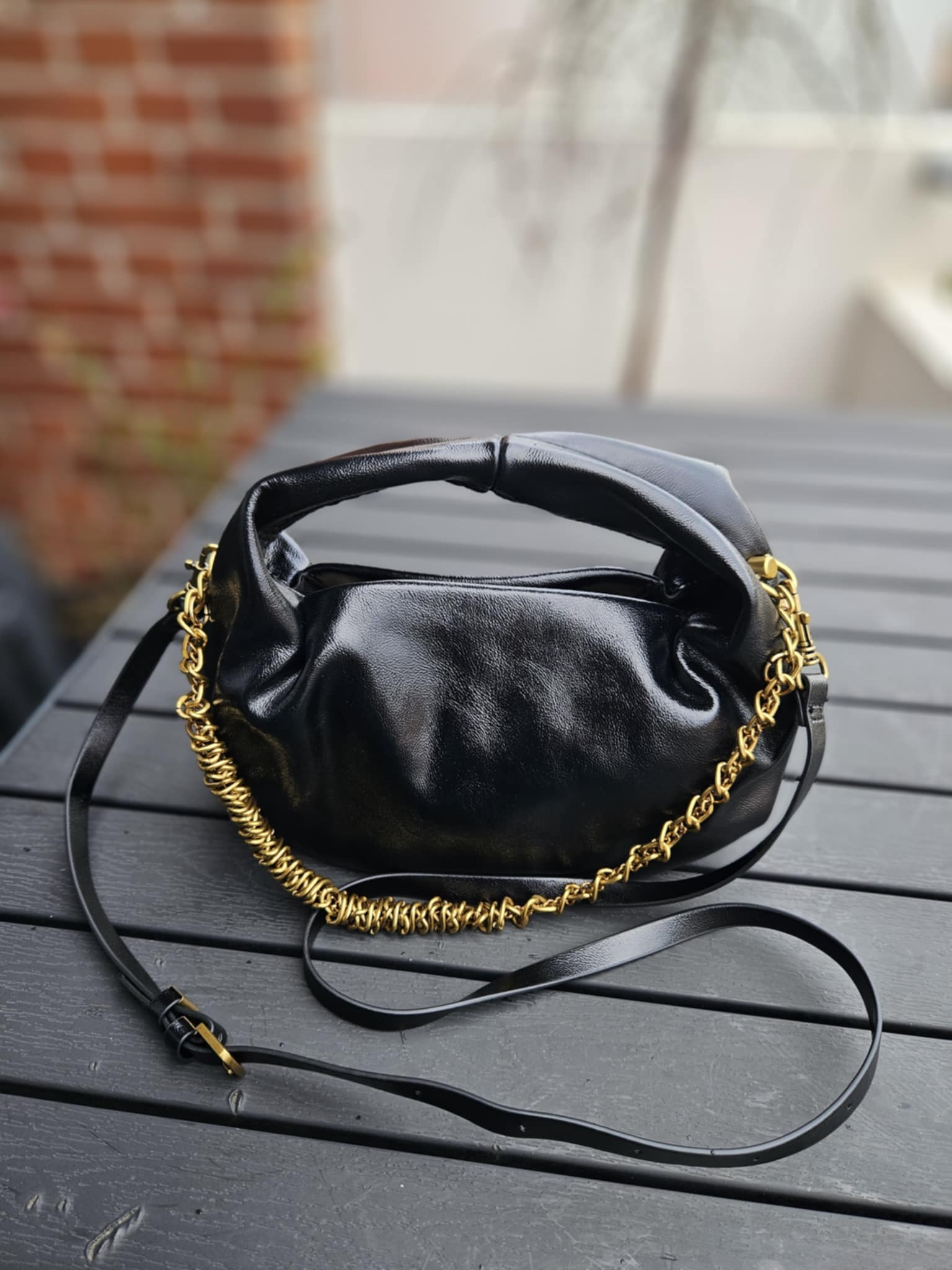 Lille håndtaske med rem og kæde - Sort