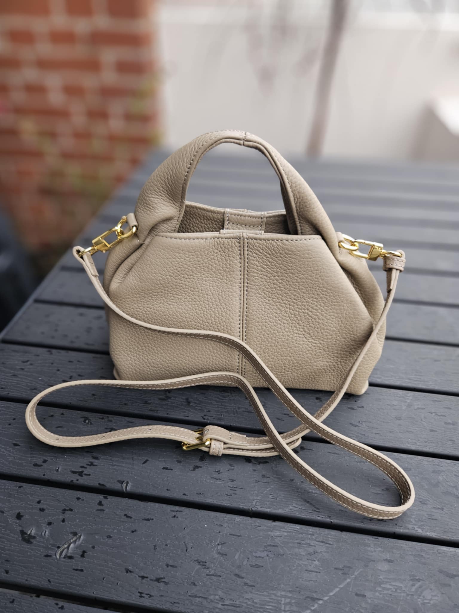 Lille håndtaske med rem - Grå