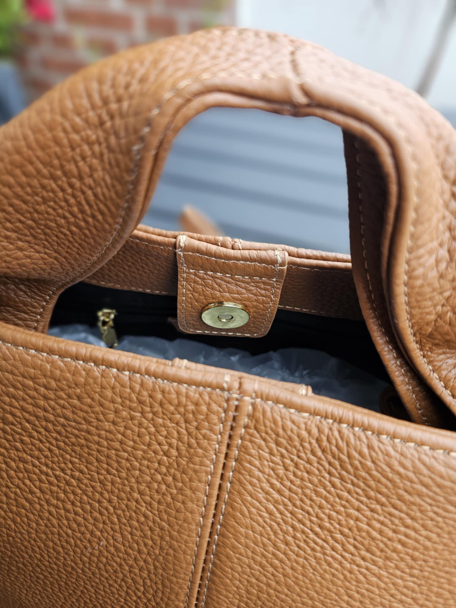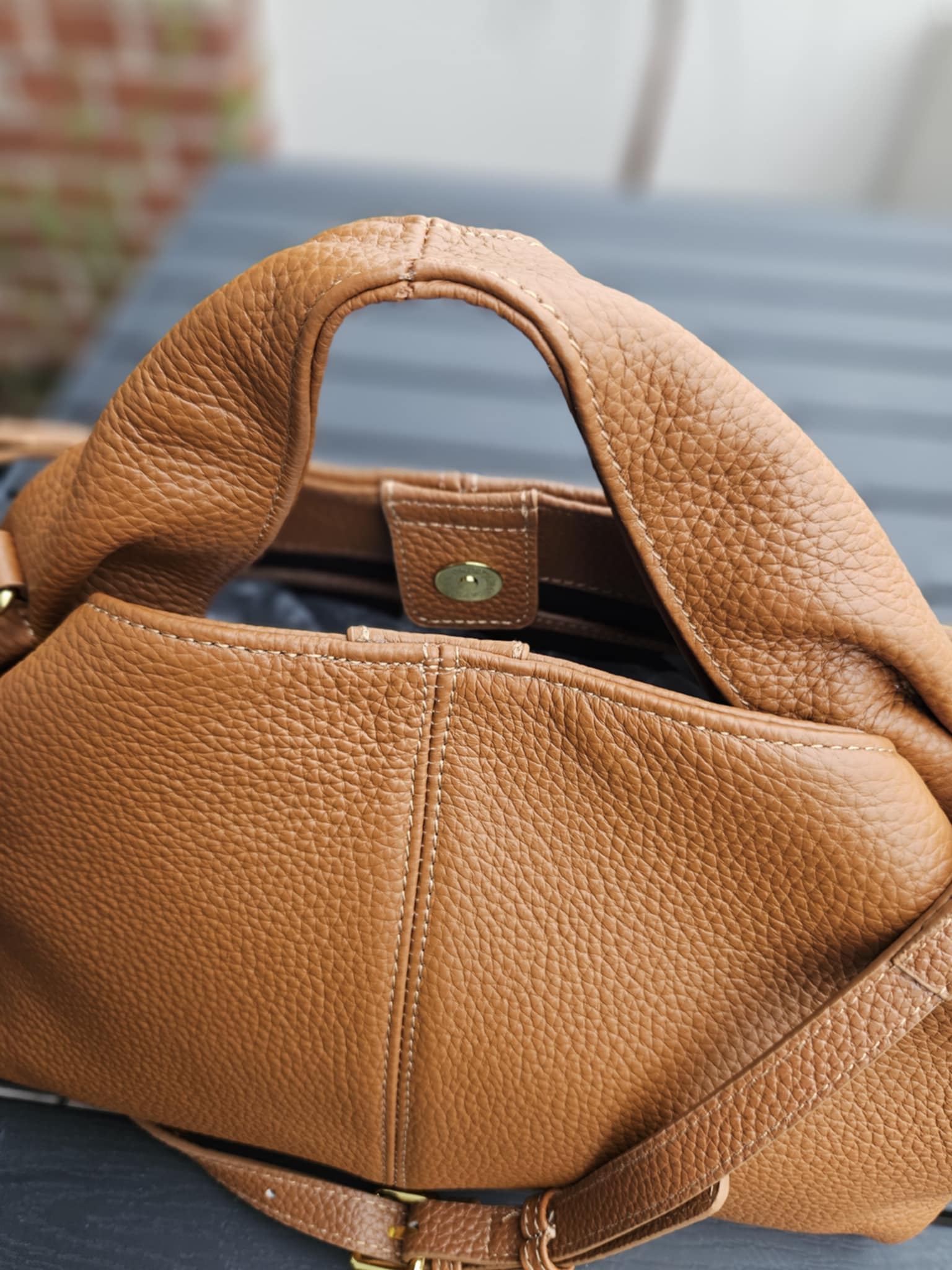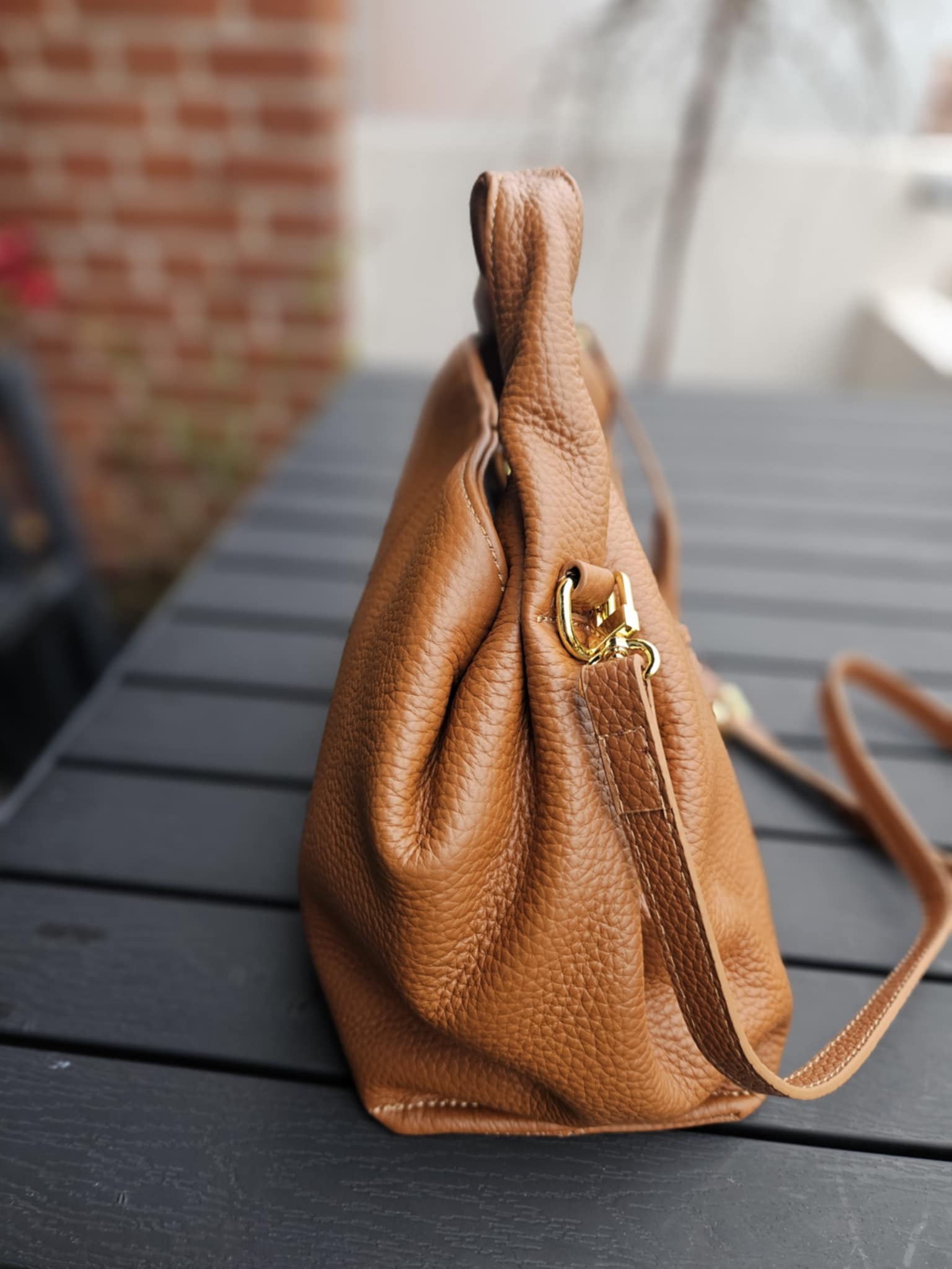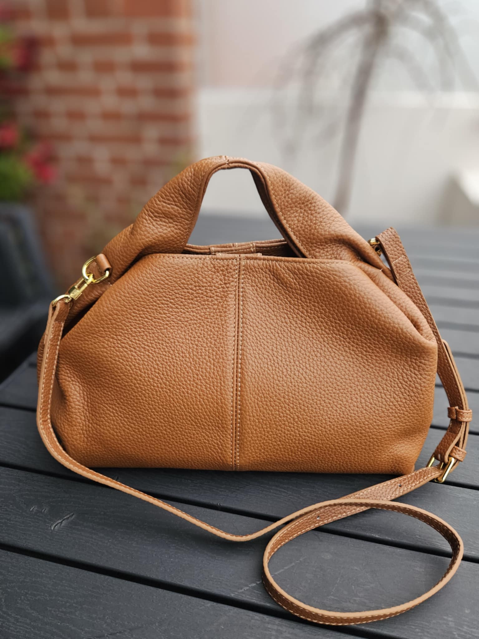 Stor håndtaske med rem - Cognac