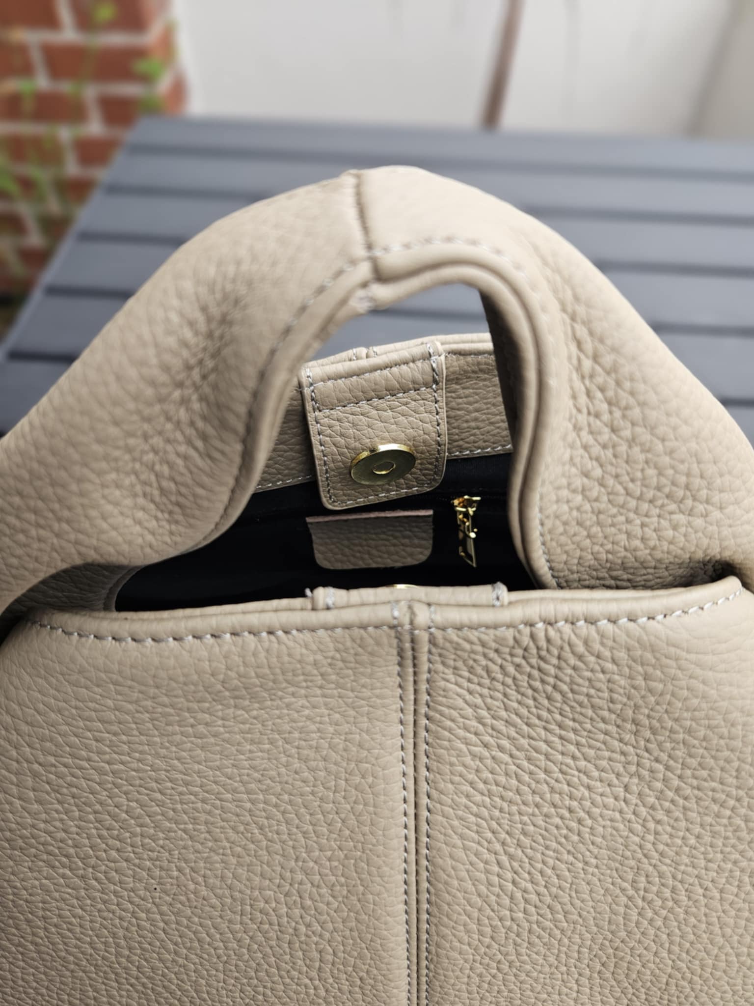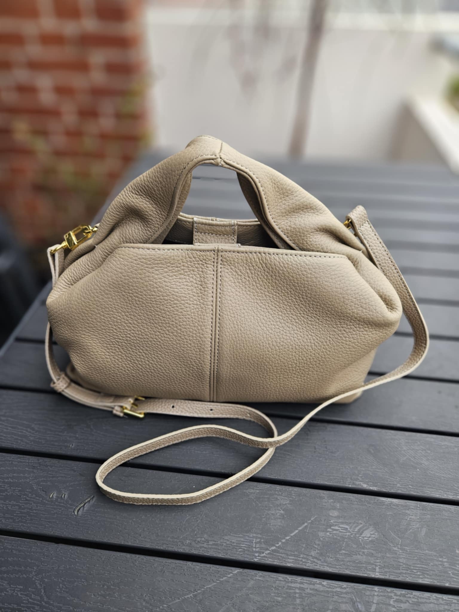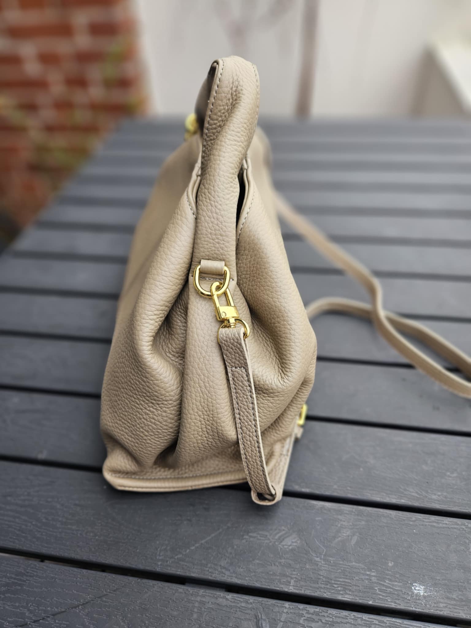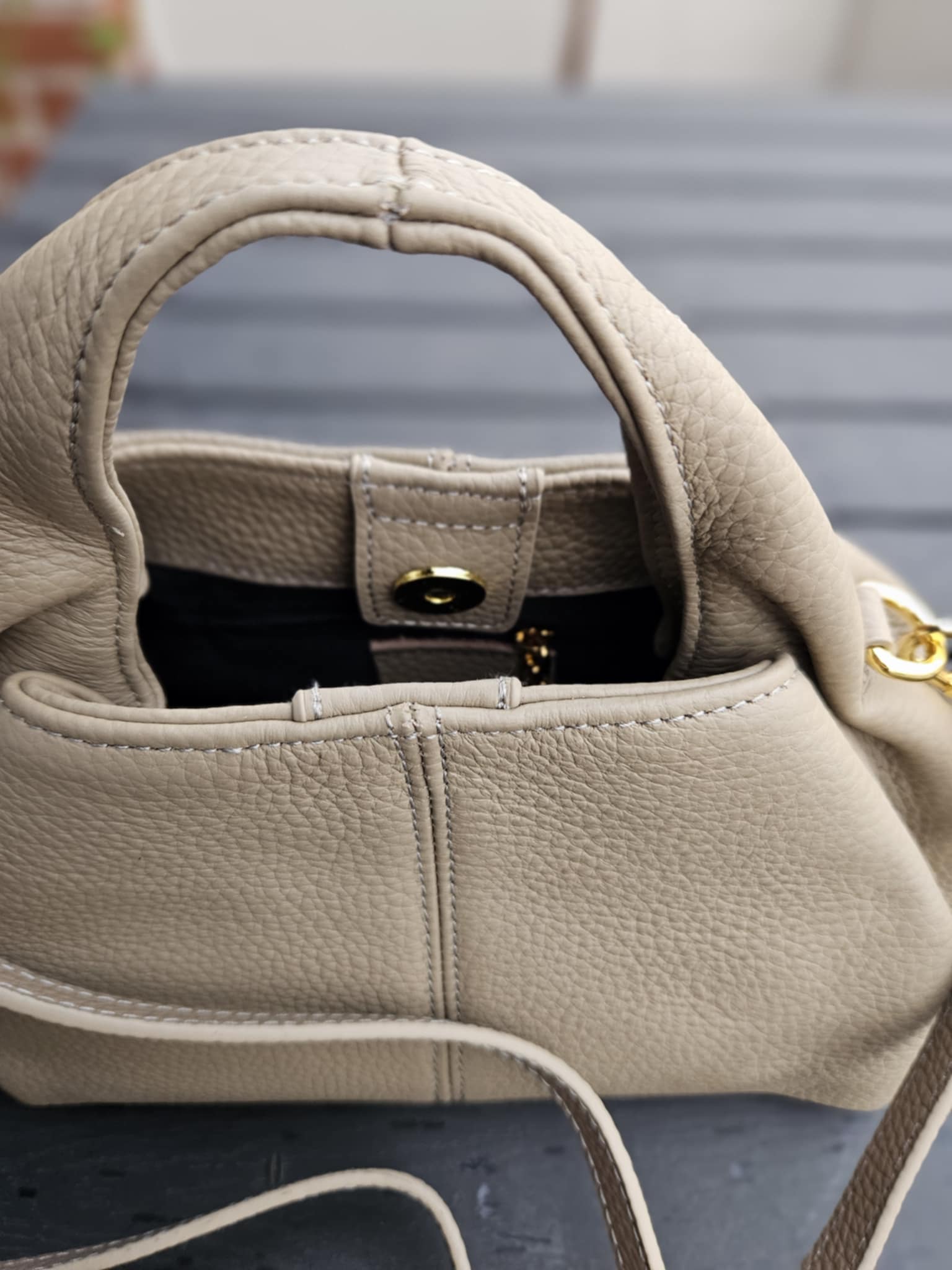 Stor håndtaske med rem - Grå