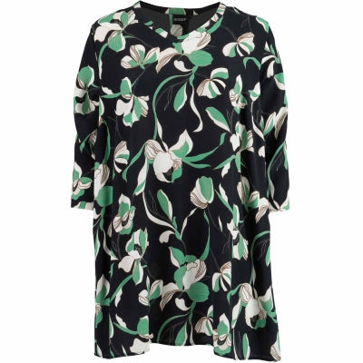 Hvor er den da bare helt vild fantastisk - den her "Meta" tunika.... - og sikke et fantastisk flot print og farver - den sorte baggrund og det flottes grønne/Offwhite blomsterprint