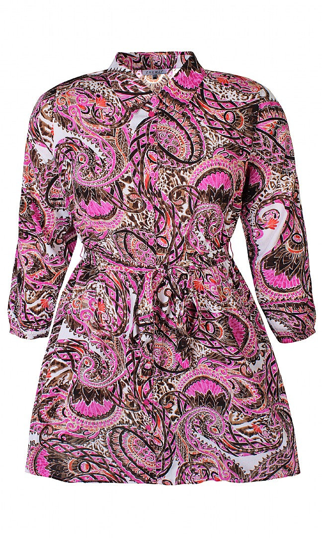 Denne tunika er et must-have i enhver garderobe. Den er lavet i lækkert crepet viskose. Tunikaen har skjortekrave og er gennemknappet. Ærmerne er lange og afsluttes med en lille elastik, til taljen er der et matchende bælte og så er der selvfølgelig lommer i siden...