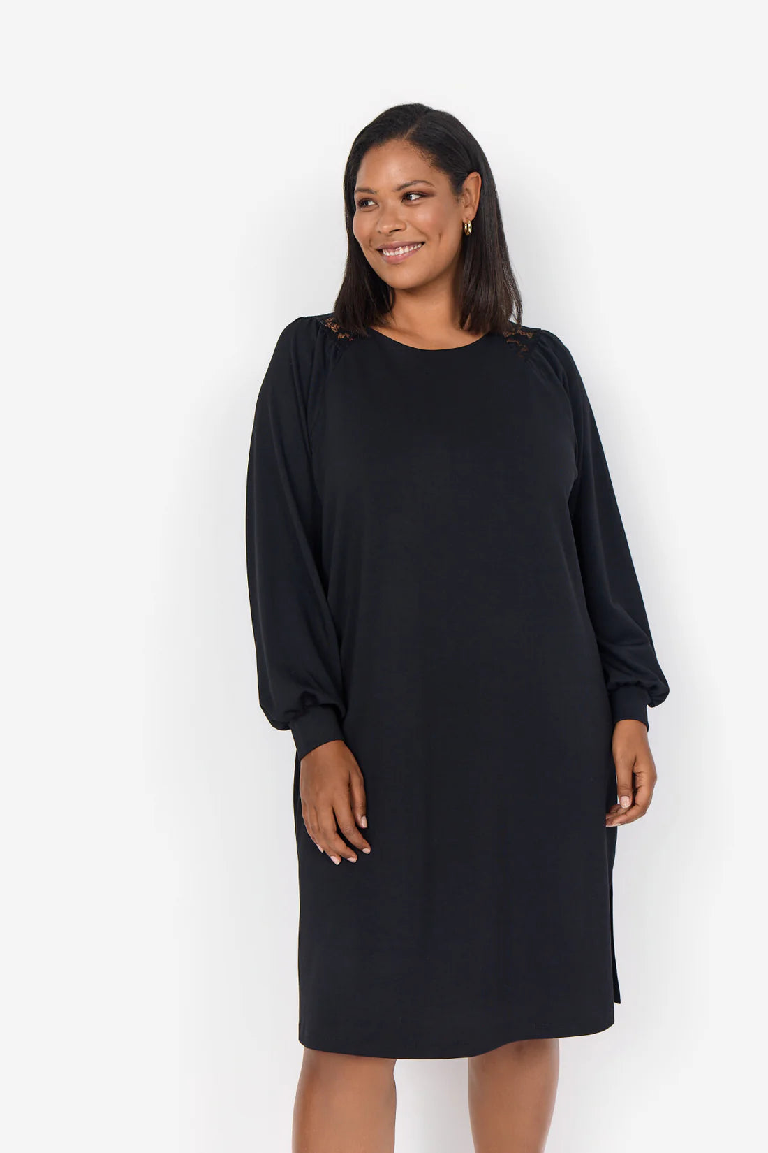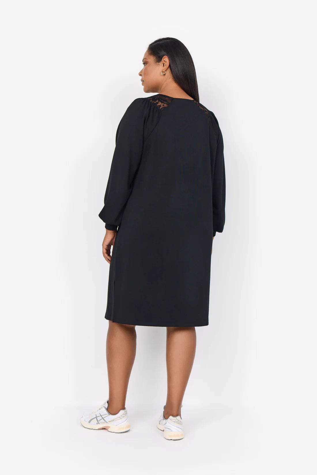 WA-Sabina 5 er en elegant kjole lavet af en blød blanding af modal, polyester og elastan. Kjolen har en rund halsudskæring, lange ballonærmer, en løs pasform, en midilængde og blondedetaljer. Style denne smukke kjole med dine yndlingshæle og en clutch for et formelt look.