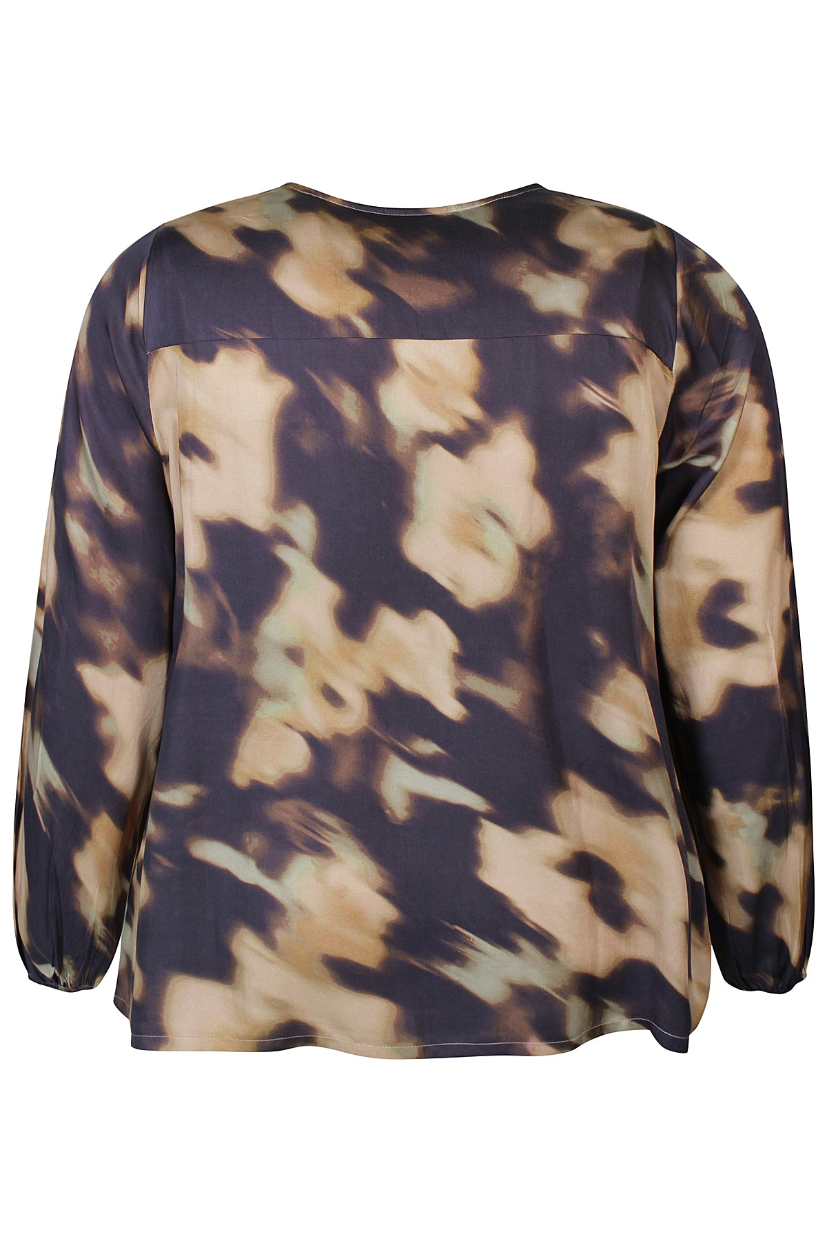 Blusen er glat i stoffet.  Rund hals med lille V-huld i. Lange ærmer med elastik i kanten. XS... Læs mere og se produktmål