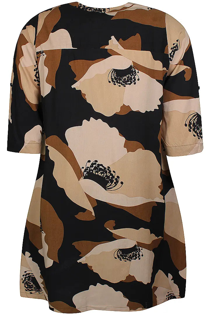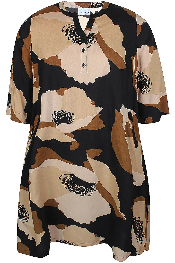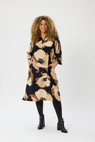 Printet kjole med 3/4 ærme "ZH-Sadie" - Sand