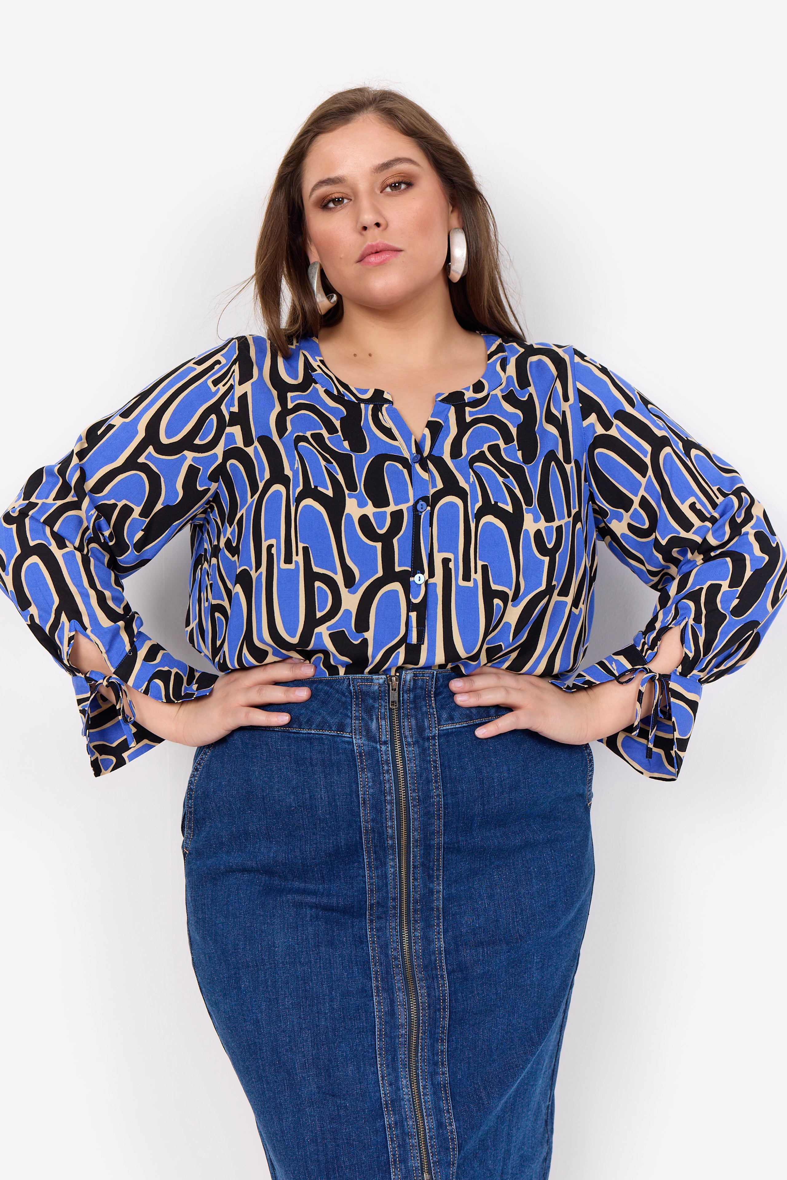 WA-VALERA 2 blusen har et unikt abstrakt printdesign, trekvartærmer med bindedetaljer, en blød krave og knapper foran. Sæt den sammen med skræddersyede bukser eller en tætsiddende nederdel og få et smart og afslappet look med den afslappede silhuet.