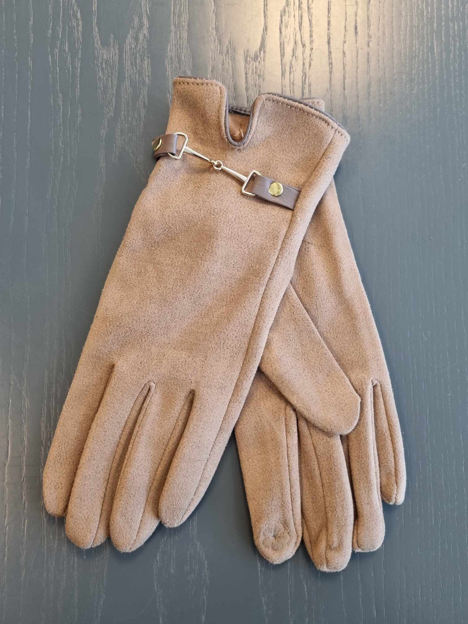 En lækker enkelt handske med et fint bidsel som pynt, og med "touch" funktion ved tommel- og pegefinger så mobiltelefonen evt. kan bruges uden at tage handsken af..