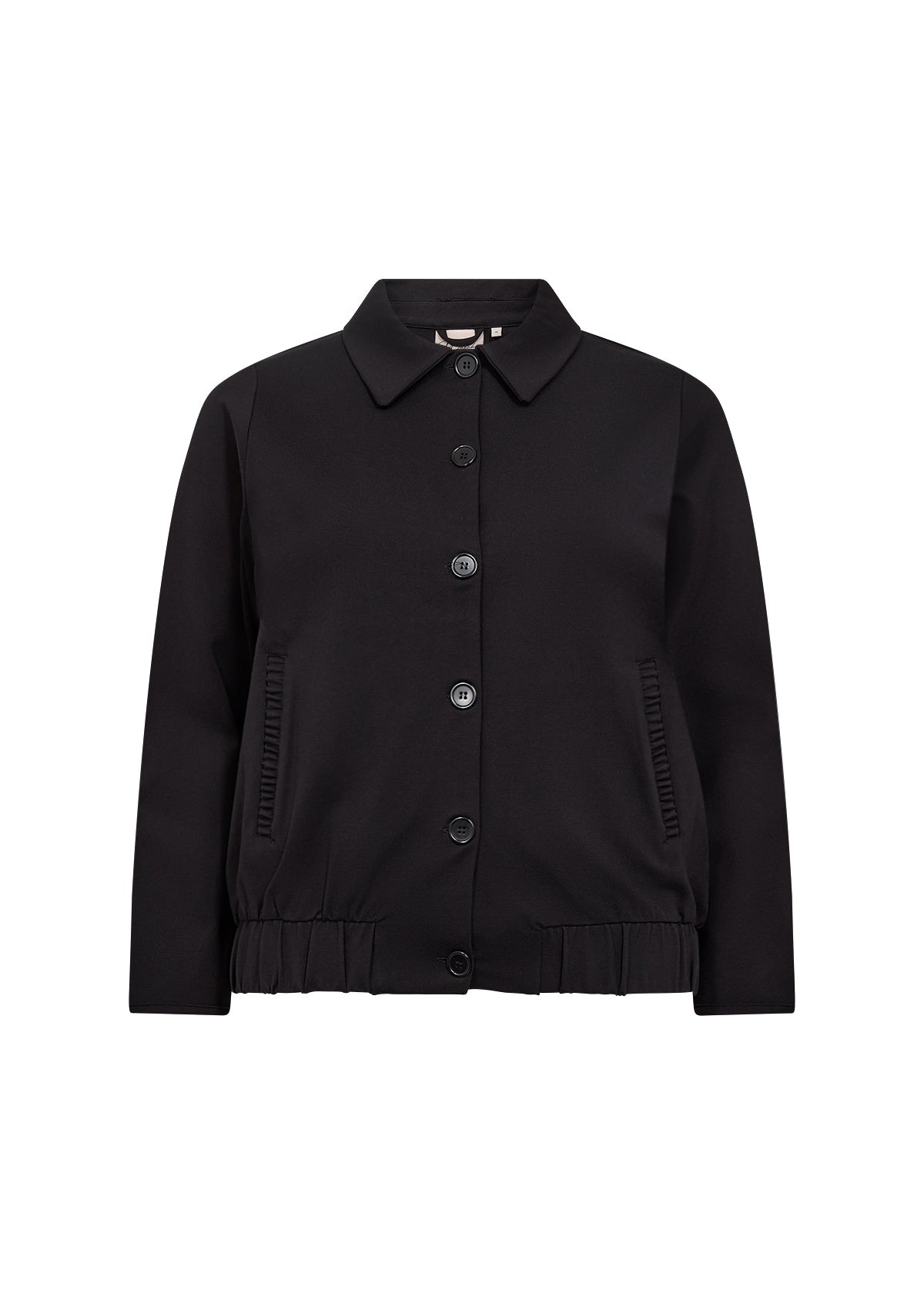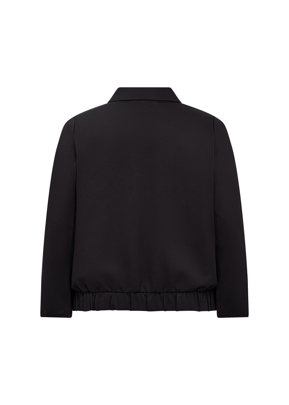 Lækker bomber jakke med krave og knapper. Elastik detaljer ved lomme og i ribben forneden. S 42/44 Brystmål... Læs mere og se produktmål