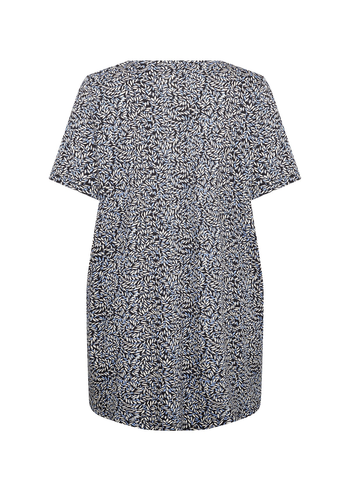 Tunika/lang T-shirt har en diskret V-udskæring, korte ærmer og et bladprint.
