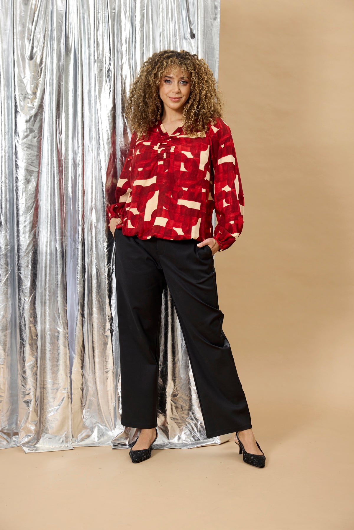 Bluse med langt ærme med elastik i kanten. XS 38/40 Brystmål 110 cm, længde 70 cm S 42/44... Læs mere og se produktmål