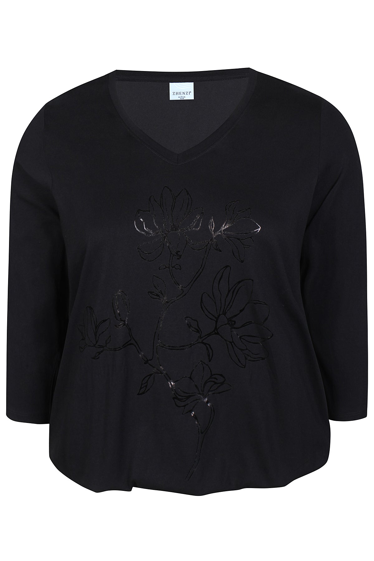 Bomulds bluse med elastik "ZH-Tess" - Sort