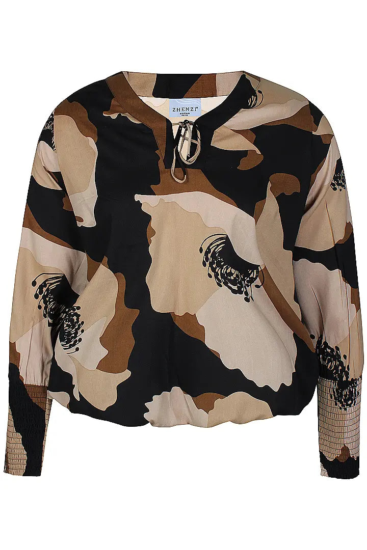Printet bluse med elastik "Zh-Sadie" - Sand