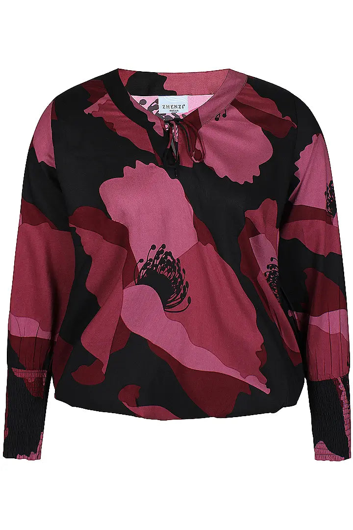 Printet bluse med elastik "Zh-Sadie" - Wine