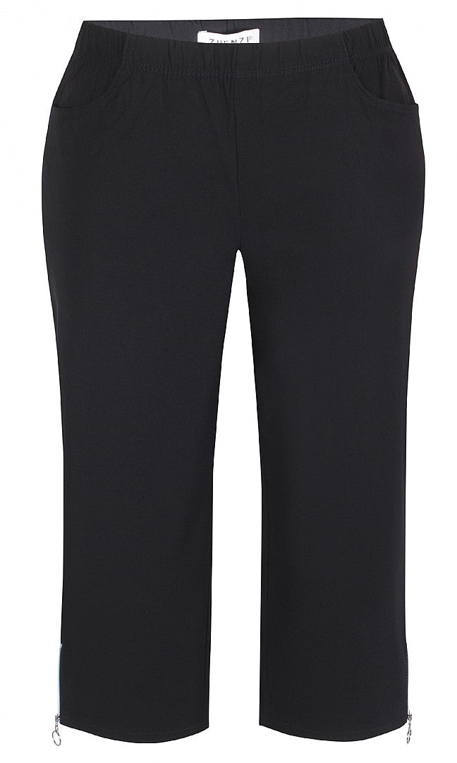 Buksen er en 3/4 lang bengalin med en god elastik i taljen, forneden i siden på hvert ben, er den smarte detalje med en kort lynlås som kan åbnes.