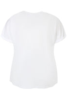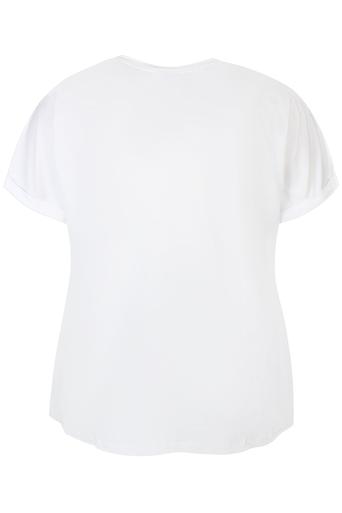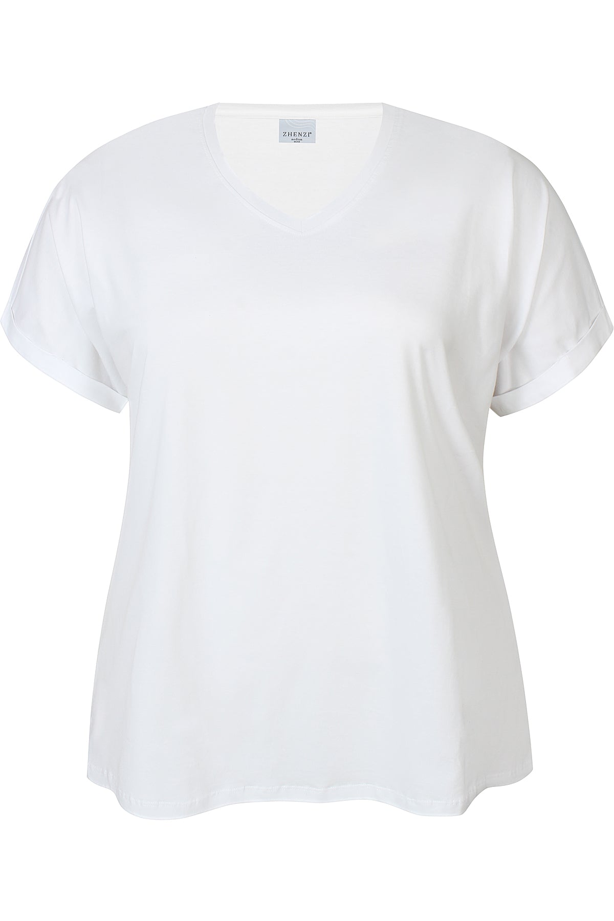 T-shirt med V-hals og lille ombuk på ærmet.