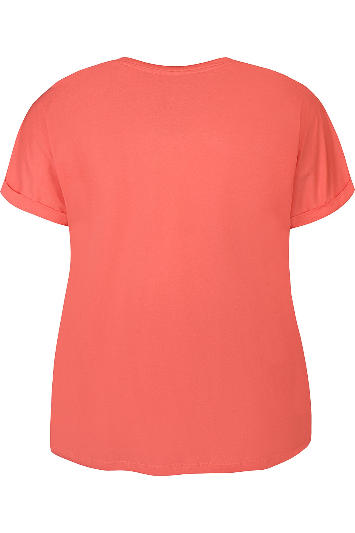 T-shirt med V-hals og lille ombuk på ærmet.