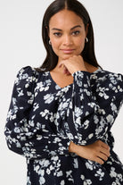 Blomstret bluse med V-hals "KCalicia" - Marine