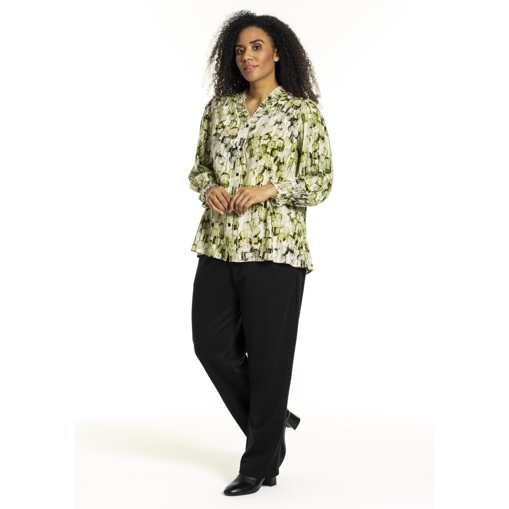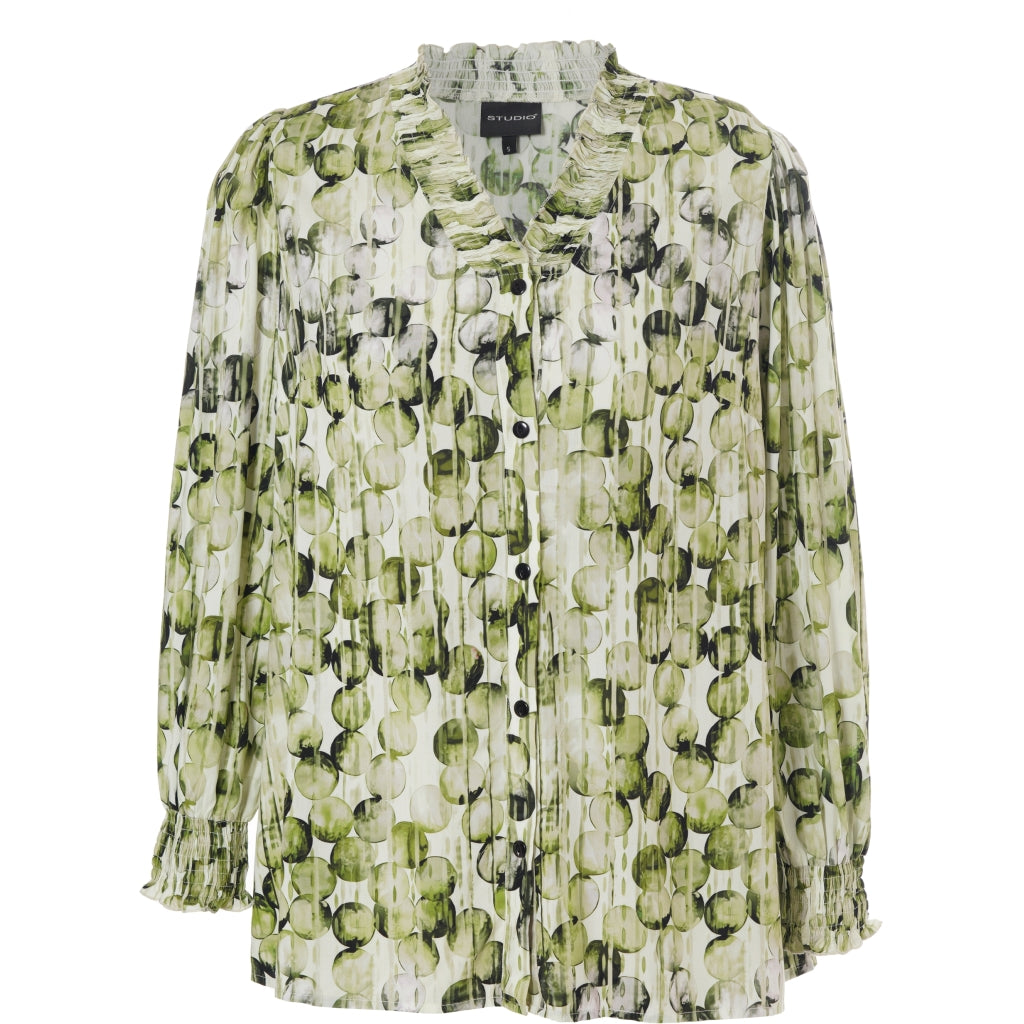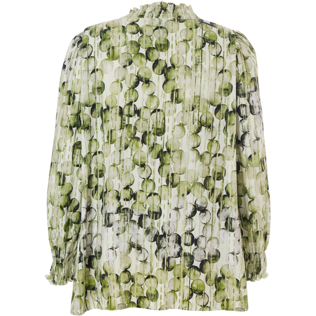 Flot grøn og hvid farvet bluse med bobleprint, 100% viskose.
