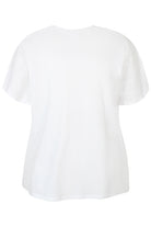 T-shirt med broderie anglaise, V-hals og kort ærme.