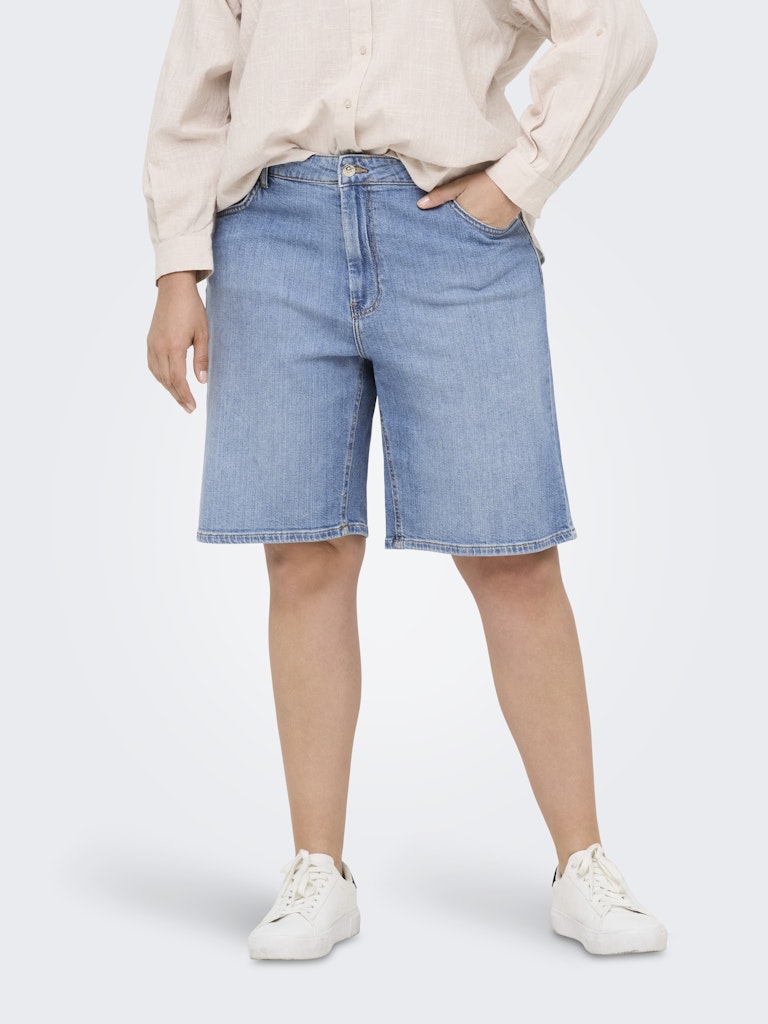 Bomulds denim shorts med lige ben. Lommer både foran og bag på, bæltestropper. Størrelse 42 44 46 48... Læs mere og se produktmål