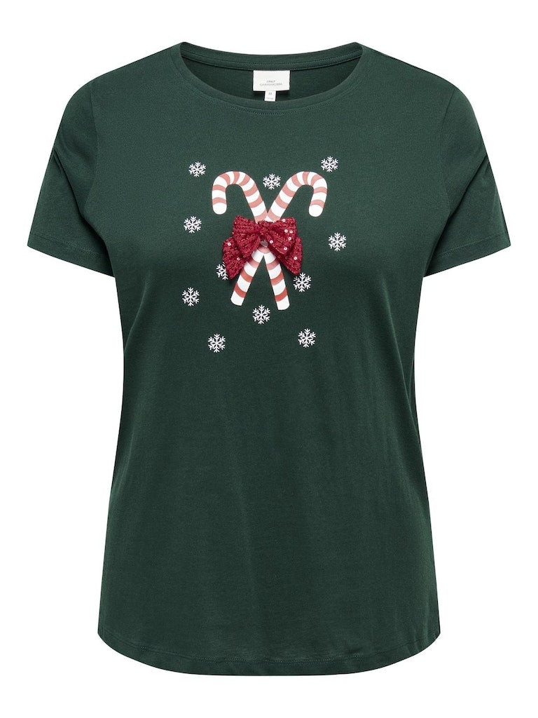 Bomulds T-shirt med julemotiv. 100% Bomuld - Økologisk Mærke Only carmakoma Vare nr. 15330314 R25 Grøn  S 42/44... Læs mere og se produktmål