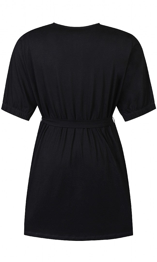 Tunikaen har en flot rund udskæring, ærmerne er 3/4 lange og afsluttes med en elastik og så er der et tilhørende bælte med til taljen.. Virkelig en lækker tunika..