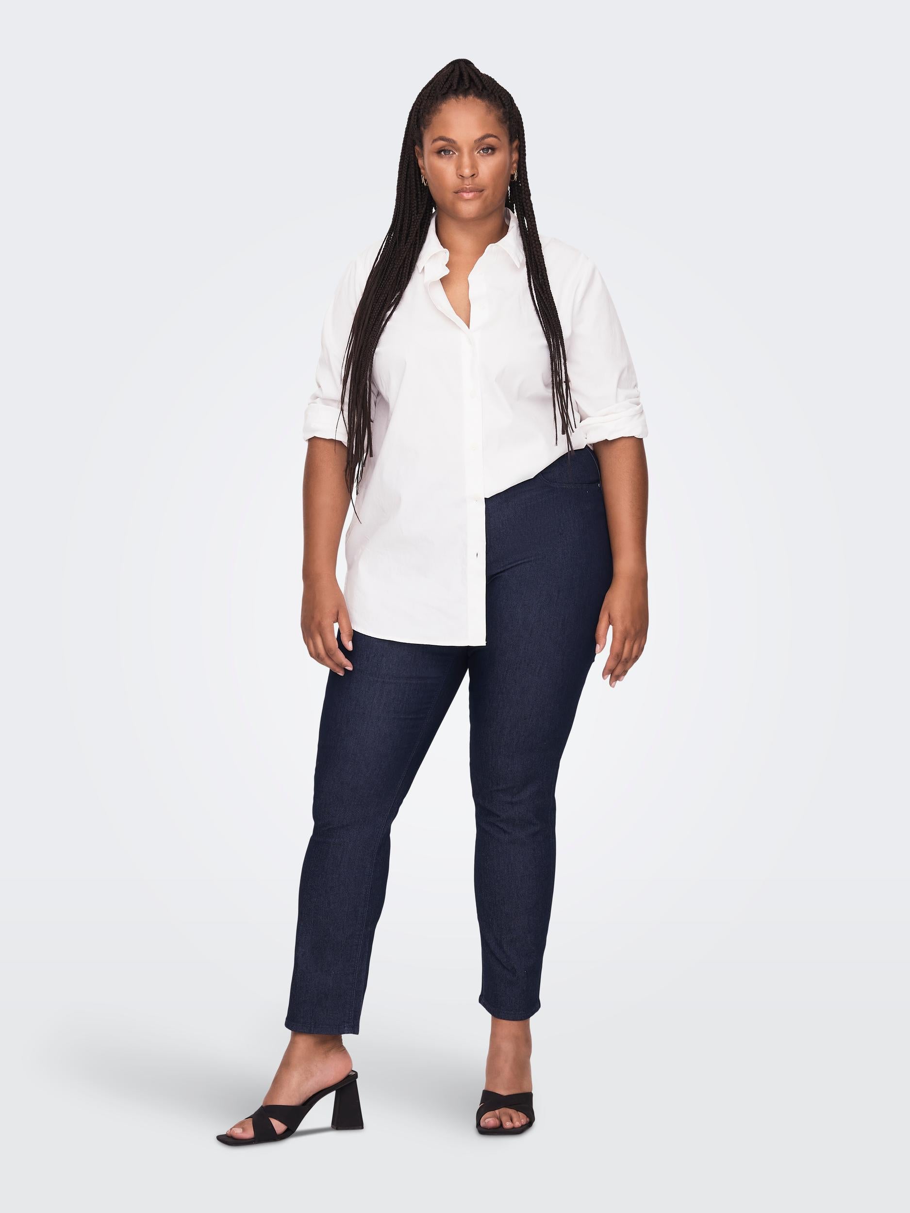 Endnu en super lækker jeans fra fantastiske ONly Carmakoma... Den her model "Hiris" er Curvy jeans i straight fit (altså en lige model), der er formgivende omkring lårene og har et komfortabelt straight leg fit ned til benåbningen, modellen har også en "Push up effekt"