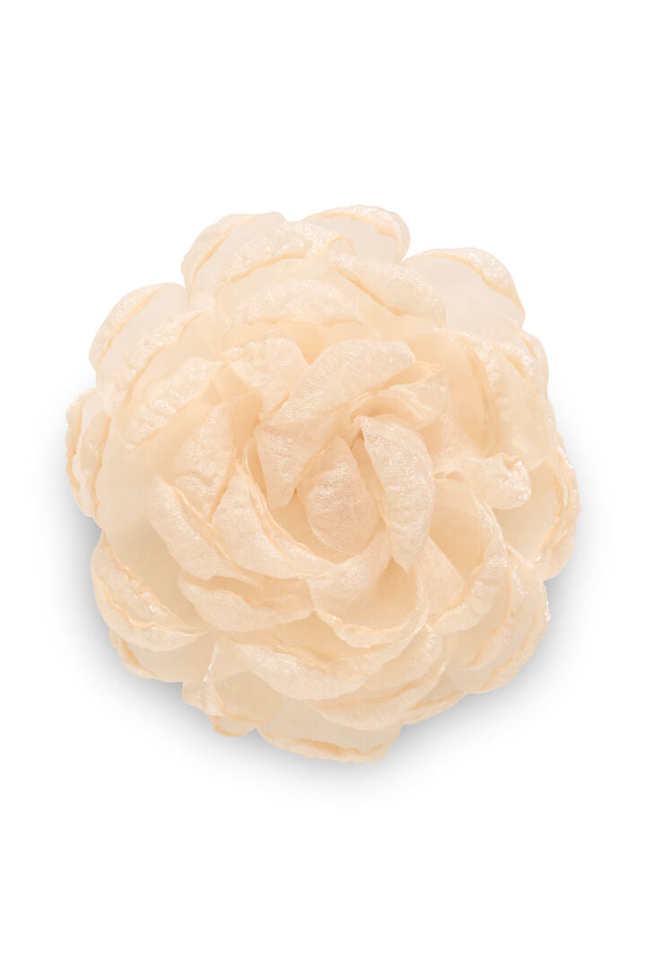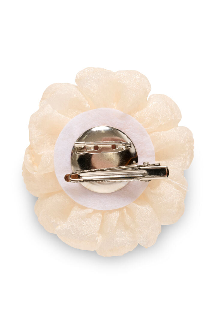 Blomsten som er fremstillet i 100% Polyester, har både nål og en klemme som gør at du kan bruge den lige som du ønsker..