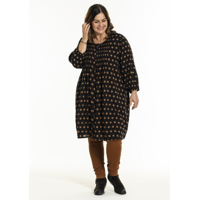 Stilfuld skjortetunika i 100% viskose med prikket print.