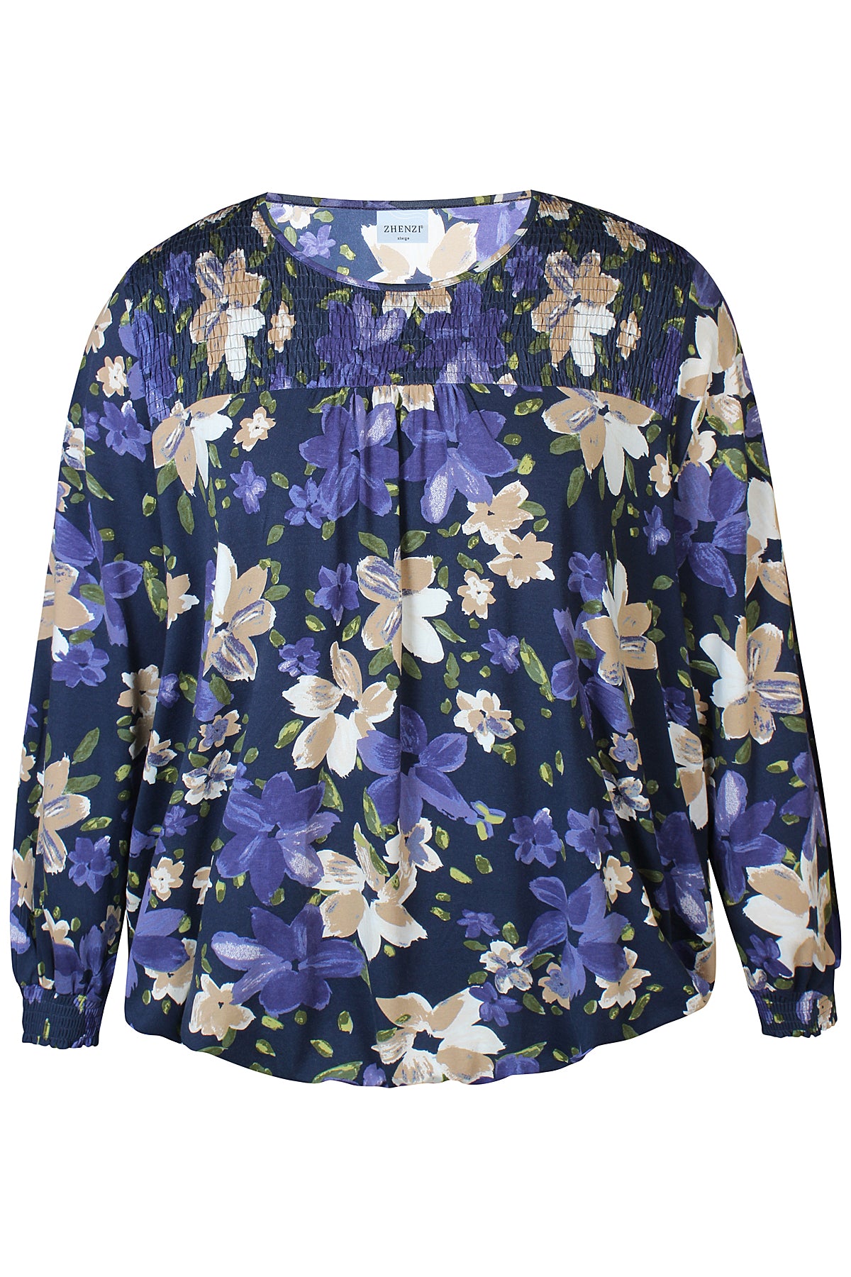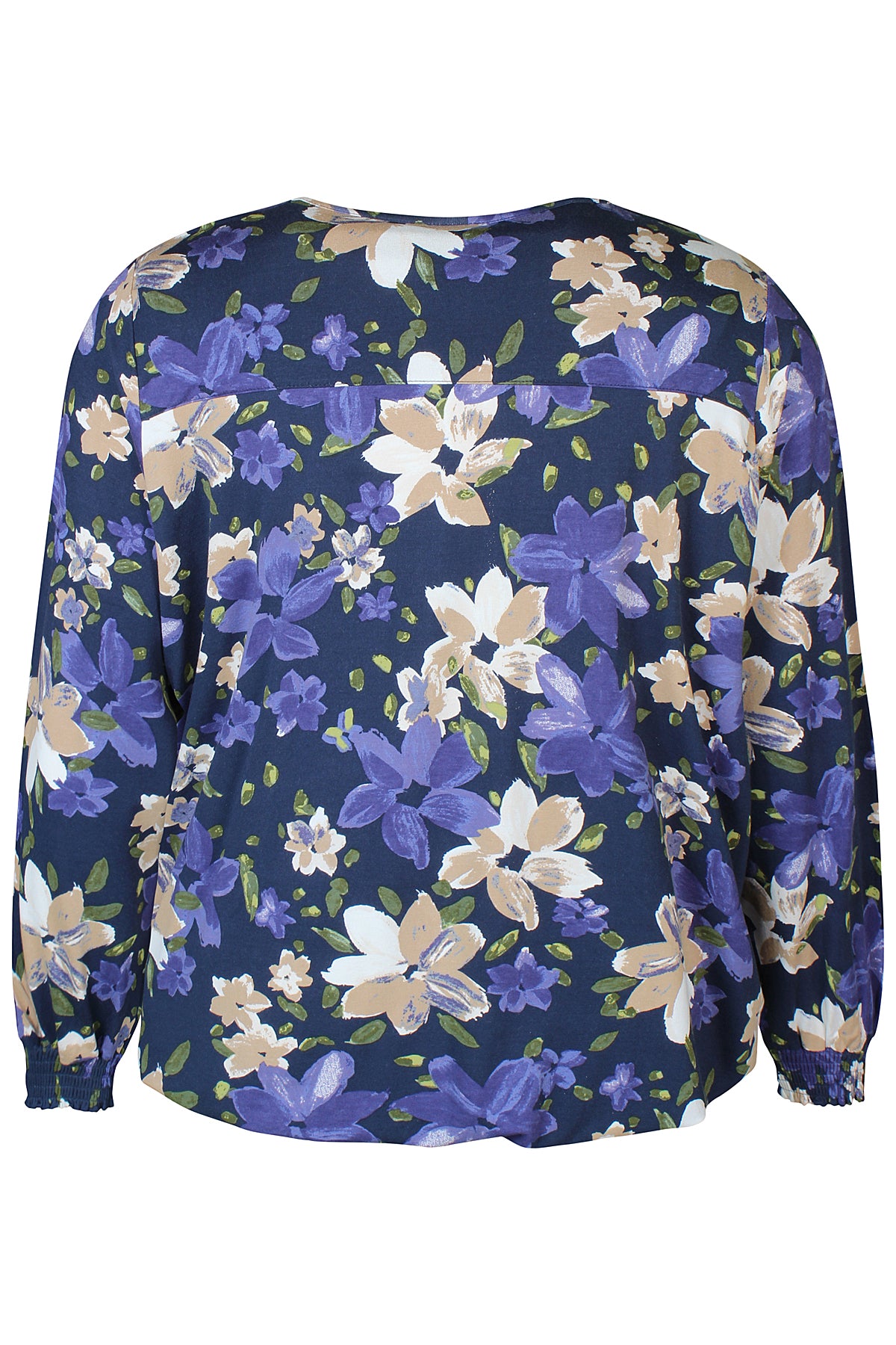 Bluse med lange ærmer og elastik i taljen.